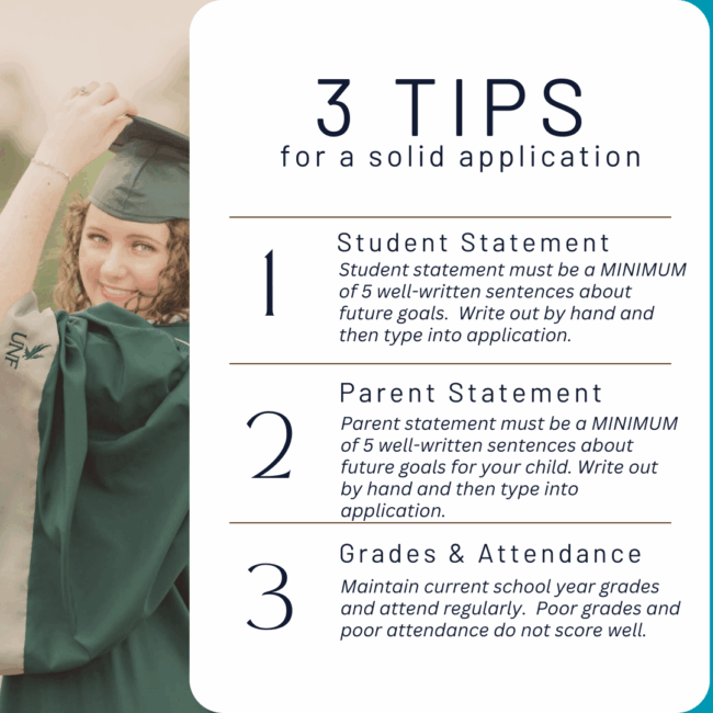 The intent of obtaining the scholarship is a long-term goal that is achieved through years of hard work. Years that are filled with building meaningful relationships with others who deeply care about your success, and helping you reach your full potential. During the weekly sessions with your mentor, you will set goals, build positive values, and develop academic skills to help you excel in your schoolwork.